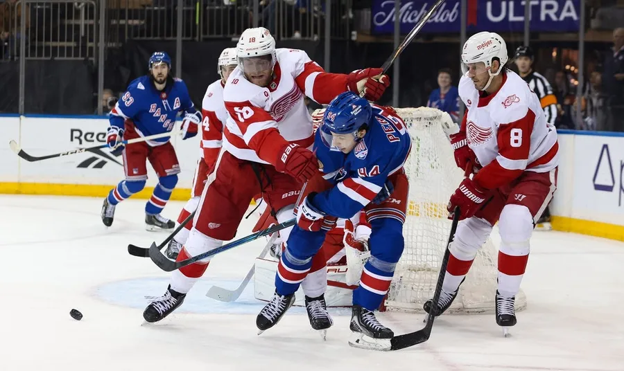 L’esordiente Gabe Perreault ha segnato due gol nel terzo periodo regalando la sua prima tripletta in carriera quando i New York Rangers hanno bloccato per 4-1 i Detroit Purple Wings in visita sabato pomeriggio.