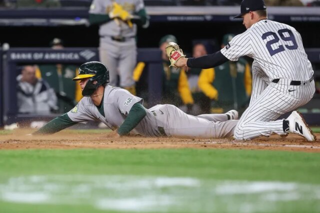 Severino ha lanciato 32 tiri nell’inning di apertura quando gli Yankees hanno preso il comando sul singolo bloop di Bellinger a sinistra poco profondo e sulla camminata carica di basi di Escarra dopo che gli A hanno perso una sfida con l’ABS.