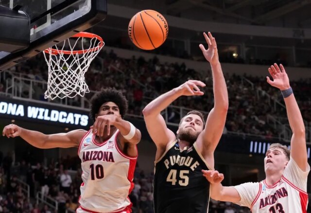 I Boilermakers erano in vantaggio per 38-31 all’intervallo, superando l’Arizona per 26-12 dopo essere stati sotto di sette all’inizio. I Wildcats hanno segnato sette gol consecutivi pareggiando a 42, poi si sono portati in vantaggio per 44-43 su due tiri liberi di Jaden Bradley con 14:34 rimanenti.