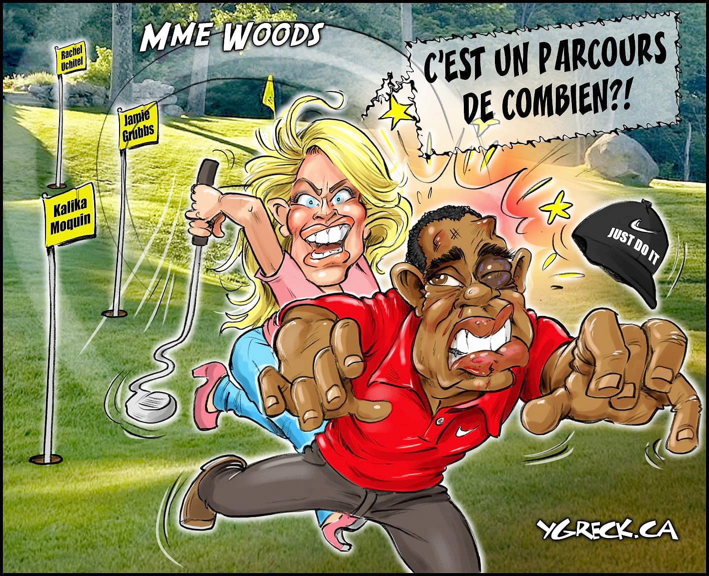 - Nel 2009, c’était: je chéris Tiger, même s’il a eu au moins 14 maîtresses, a dû faire une therapie pour sa dépendance au sexe et a fait un accident de la route après que sa femme, ayant fouillé dans son téléphone, eut couru après lui avec un bâton de golf.