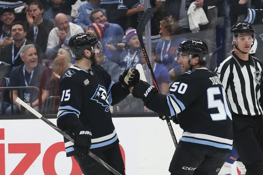 Alex Kerfoot e Lawson Crouse hanno segnato per i Mammoth contro gli Oilers. Karel Vejmelka ha concesso quattro gol in 15 tiri prima di essere sostituito da Vitek Vanecek dopo due periodi.