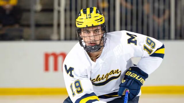 Le jeune attaquant s’était blessé samedi dernier en finale du Large Ten en effectuant un tir sur réception. È riuscito a lasciare la partita in attesa prima di tornare brevemente per una presenza in vantaggio numerico. L’allenatore-chef dei Wolverines del Michigan, Brandon Naurato, attenderà che il suo giocatore vedette sia fedele alla posta per la partita di vendita.