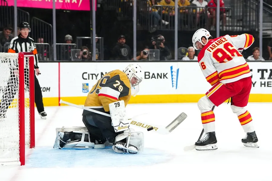 Dopo un ritardo di 26 minuti per iniziare il terzo periodo per riparare una piccola zona di ghiaccio sotto la linea di porta di Calgary, Howden ha dato ai Golden Knights il primo vantaggio della partita con 7:40 rimanenti quando ha scattato un tiro dallo slot oltre il lato bloccante di Wolf.