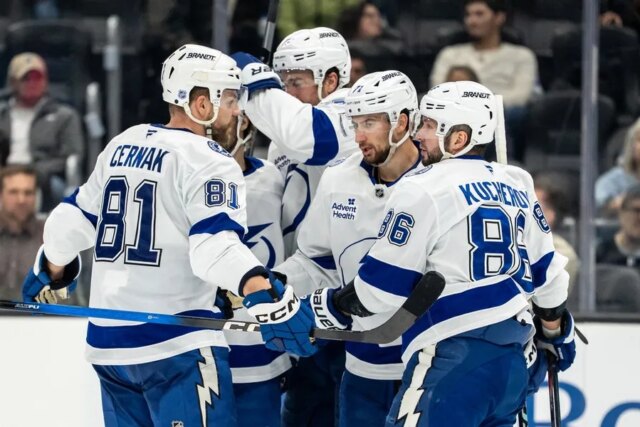 Nikita Kucherov ha segnato tre gol e aggiunto due help mentre i Tampa Bay Lightning hanno sconfitto i padroni di casa del Seattle Kraken 6-2 martedì.