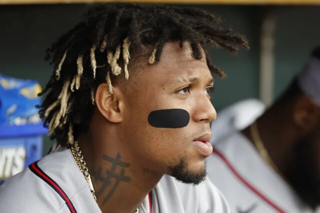 L’outfielder degli Atlanta Braves Ronald Acuna Jr. è stato colpito da due tiri lunedì sera, e il secondo lo ha spinto a lasciare la partita contro i Washington Nationals ospitanti.