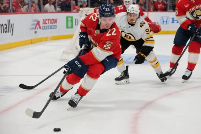 I Panthers hanno aperto le marcature con 4:20 andati. AJ Greer, entrato in partita con 183 valide da file per la squadra, è entrato con il forecheck, costringendo un turnover. Samoskevich ha intercettato il brutto passaggio di Henri Jokiharju. A peggiorare le cose per Boston, Jokiharju ha inavvertitamente bloccato Swayman e il tiro di Samoskevich dal cerchio sinistro è rimbalzato sul palo sinistro.
