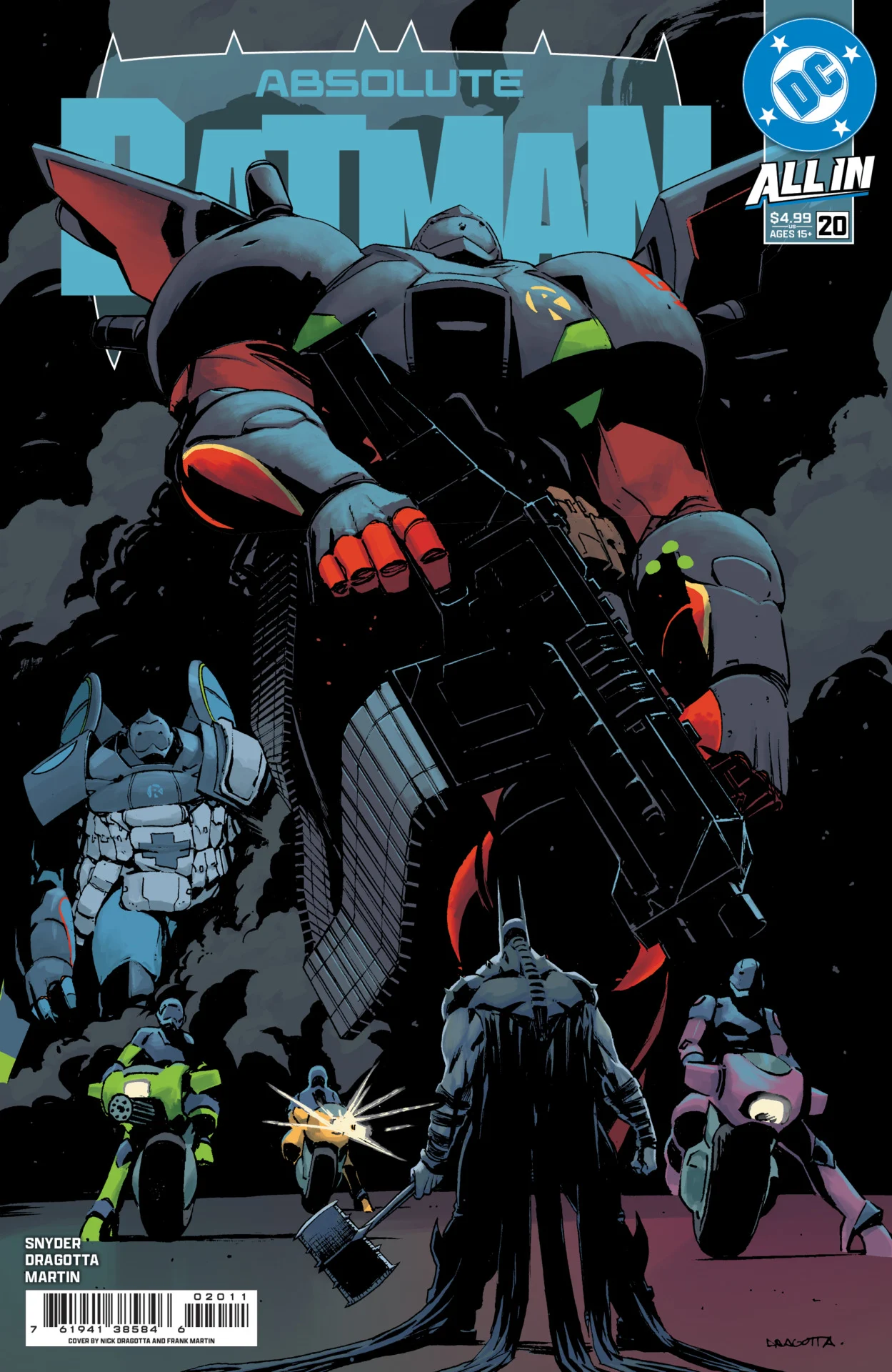 Questa settimana DC Comics ha rivelato la copertina del suo ultimo numero fondamentale di Batman assolutoè il 20° e rivela completamente che Absolute Robin è in arrivo… e che Absolute Robin è un Gundam potenziato con il succo di Bane.
