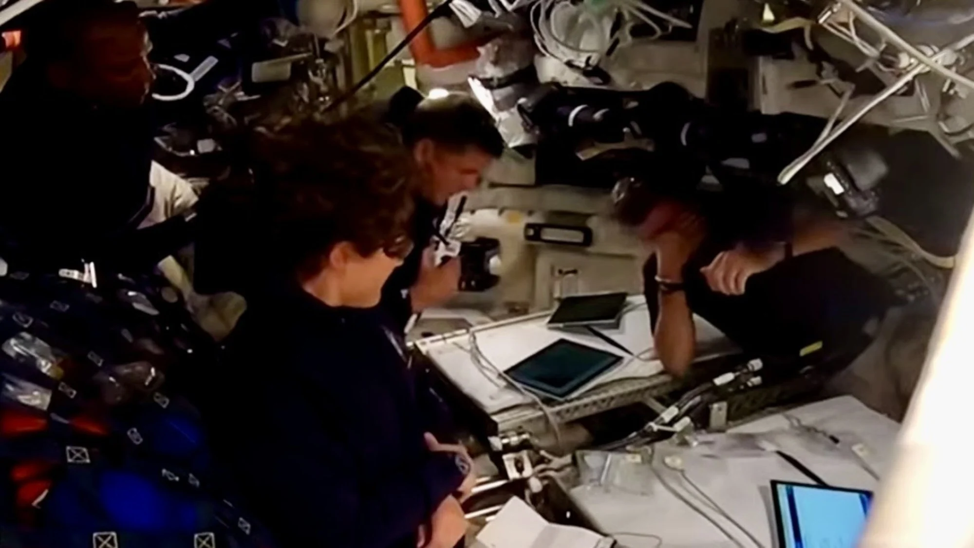 Mentre Hansen parlava nel reside streaming, Wiseman poteva essere visto nella navicella spaziale, doppiato Integritàasciugandosi gli occhi e mettendo la mano sulla spalla del suo compagno di squadra. Quindi, tutti e quattro gli astronauti, che si sono addestrati insieme per la missione dal 2023, si sono avvicinati l’uno all’altro per un abbraccio di gruppo. Koch si tolse gli occhiali per asciugarsi le lacrime.