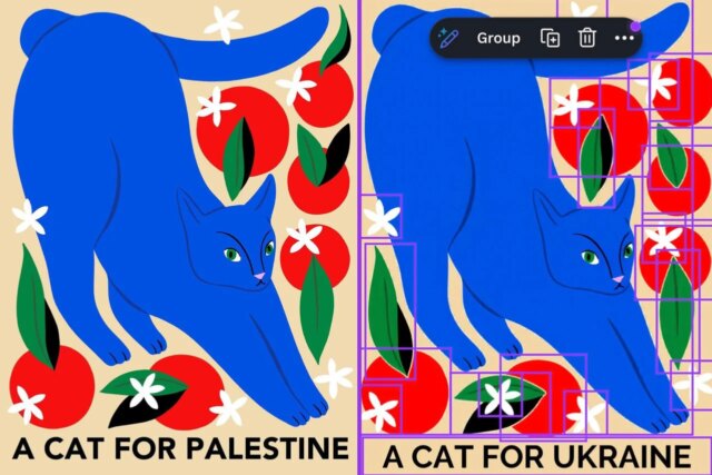 La piattaforma di progettazione grafica Canva ha una serie di strumenti di intelligenza artificiale a disposizione degli utenti, ma si scopre che hanno alcune opinioni editoriali davvero forti, inclusa la rimozione della parola “Palestina” dai progetti. Il problema period notato dall’utente X @ros_ie9che ha condiviso un’immagine che mostra la funzione “Magic Layers” di Canva che modifica il testo di un disegno da “Cats for Palestine” a “Cats for Ukraine”.