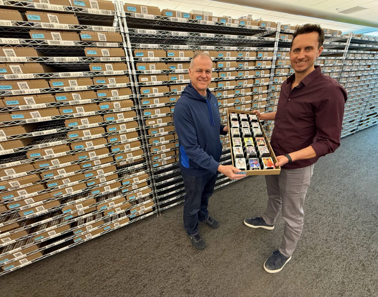 L’esteso spazio Gradient assomiglia a qualsiasi ufficio di un’azienda tecnologica emergente, con alcune eccezioni degne di nota. Ci sono scatole su scatole piene di carte collezionabili ovunque, impilate vicino a file di scaffali girevoli contenenti anche scatole di carte: 10 milioni in tutto e spazio per tre volte tanto.