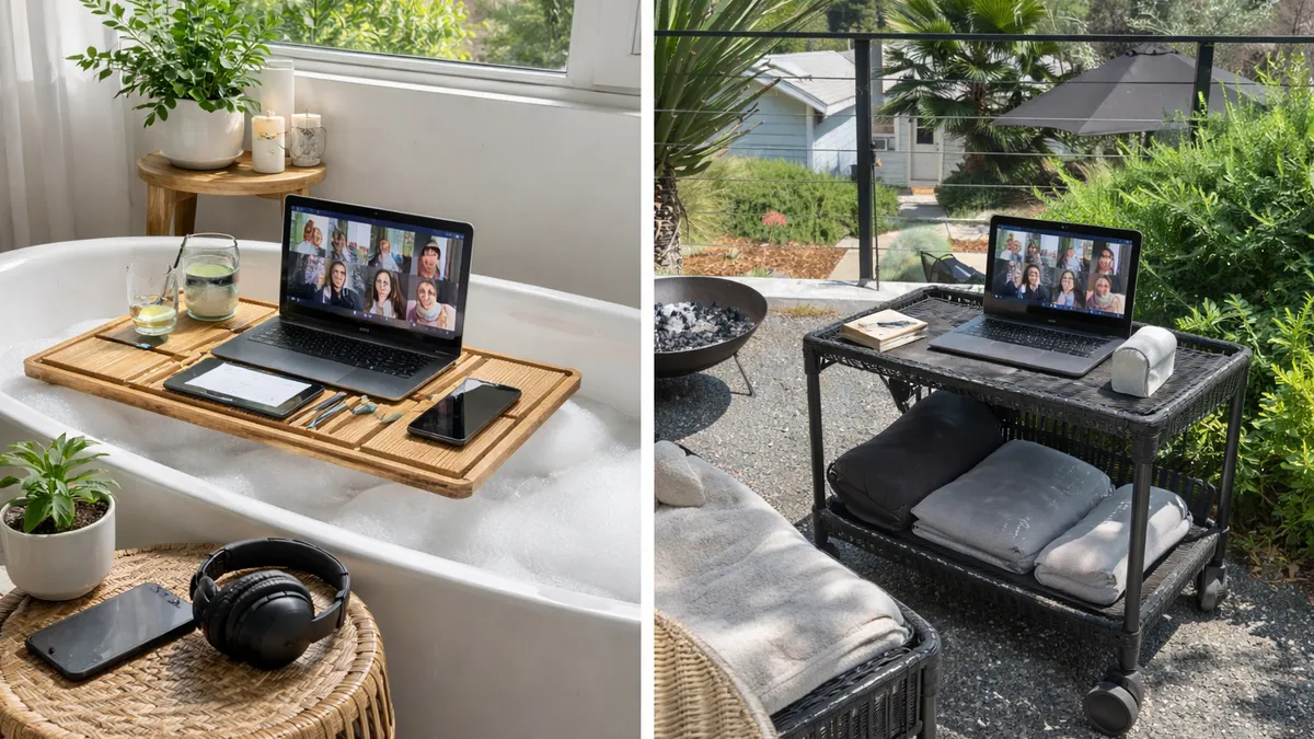 Ho fornito alcune immagini degli spazi in cui mi piacerebbe lavorare in casa e ne ho chiesto advert alcune Strumenti di intelligenza artificiale per generare una configurazione che renda il mio spazio di lavoro totalmente cell: una configurazione di lavoro da casa che si muove con me per capriccio, nel caso in cui voglia partecipare a una riunione di Groups dalla vasca da bagno o dal cortile.