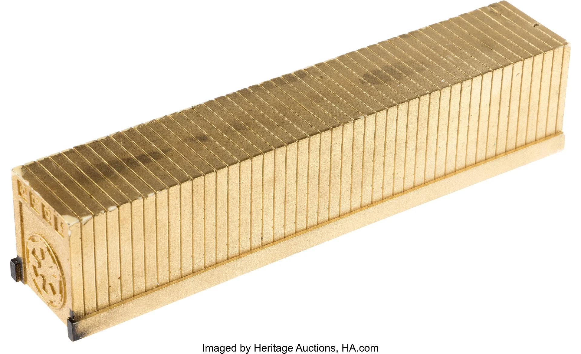 Secondo Aste del patrimonioquesti Crediti Imperiali erano tra quelli utilizzati nell’episodio della prima stagione “The Eye”. Sono “costruiti in resina colata con finitura verniciata nera e dorata, con lo stemma imperiale in rilievo sulla parte anteriore. Molteplici di queste pile popolavano i contenitori imperiali che la squadra di Andor stava prendendo di mira durante la rapina. Presentano segni di usura di produzione, inclusa una lieve perdita di colore su alcuni angoli e bordi, e una leggera usura da manipolazione e imperfezioni sulla superficie. Il retro e il lato inferiore della pila dei crediti sono vuoti come prodotti.”