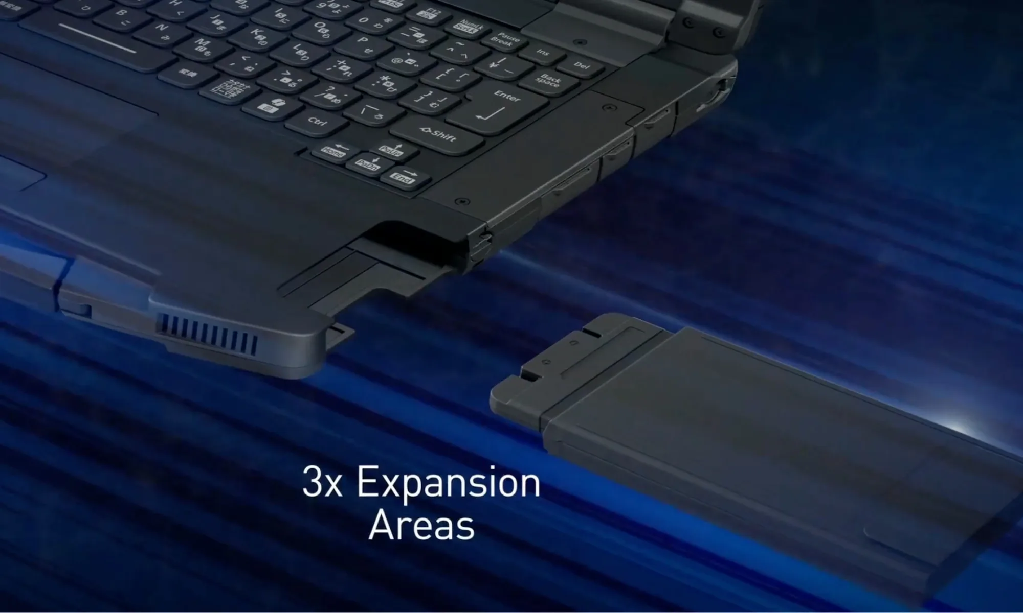 A differenza dei normali laptop computer, il Toughbook 56 offre un design modulare utilizzando tre aree di espansione, che consentono di aggiungere o rimuovere componenti {hardware} come il modulo batteria, il lettore di impronte digitali, il lettore di good card, il modulo LAN, la memoria esterna, un multi-drive DVD e hub USB.