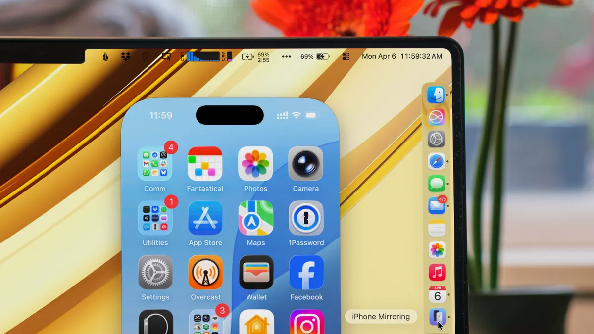 Mio iPhone non è quasi mai fuori portata, ma ciò non significa che voglio prenderlo più volte al giorno per controllare le notifiche o utilizzare le sue app. Con iPhone Mirroring sul mio Mac, il telefono può rimanere sulla scrivania o in tasca e posso comunque usarlo normalmente in una finestra come qualsiasi altra app. (dettaglio anche altri otto motivi per cui vorresti utilizzare iPhone Mirroring.)
