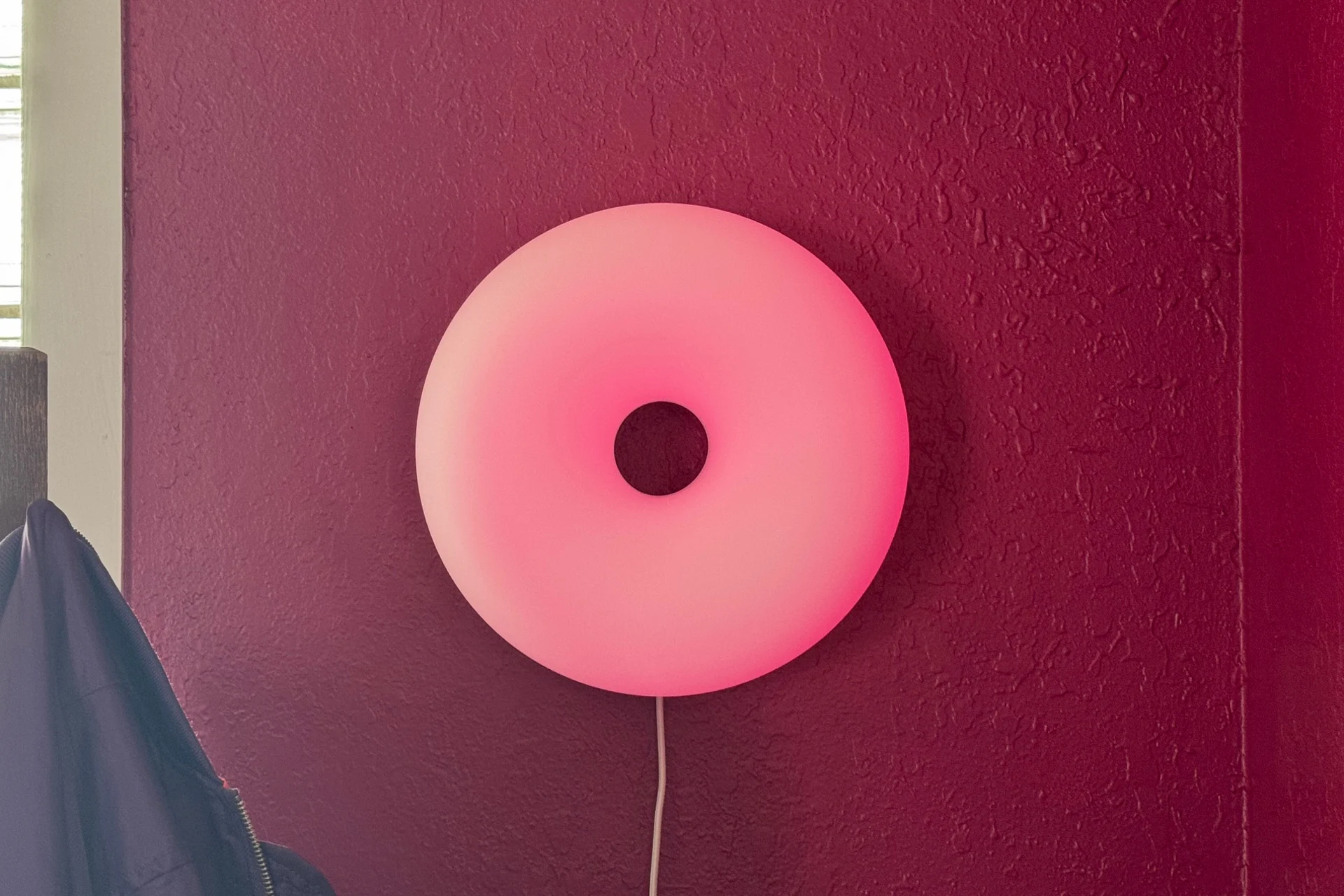 Varmblixt a forma di ciambella di Ikea è un pezzo colorato di illuminazione d’accento intelligente che funziona con qualsiasi ecosistema di casa intelligente compatibile con Matter-over-Thread.