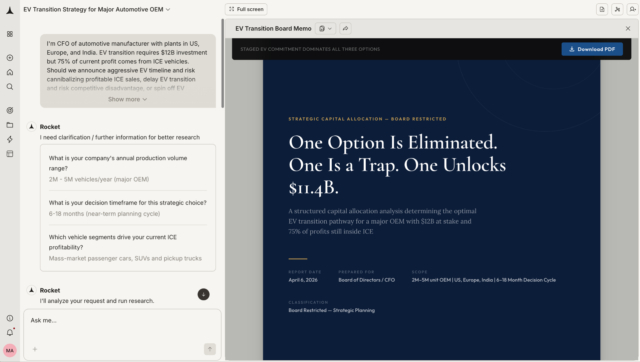 La startup, con sede a Surat, in India, martedì ha lanciato la sua piattaforma, Rocket 1.0, che collega ricerca, creazione di prodotti e intelligence competitiva in un unico flusso di lavoro. La piattaforma genera documenti dettagliati sulla strategia di prodotto, inclusi prezzi, aspetti economici delle unità e raccomandazioni per il go-to-market.
