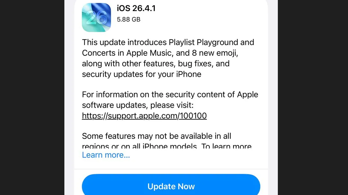 L’aggiornamento iOS 26.4.1 è stato rilasciato per gli utenti iPhone. L’aggiornamento con numero di construct 23E254 arriva appena due settimane dopo il rilascio di iOS 26.4. Gli utenti iPhone idonei possono installare l’aggiornamento andando su Impostazioni > Generale > Aggiornamento del software program> Aggiorna ora e seguendo le istruzioni.