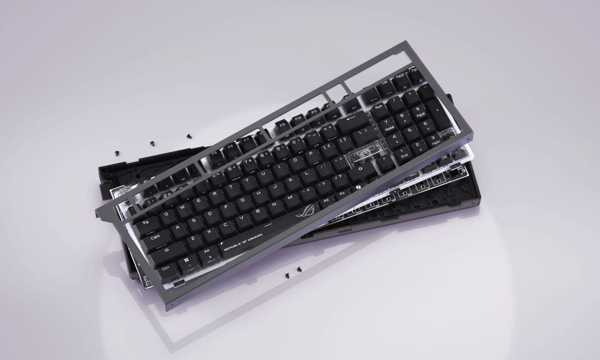 La tastiera è dotata di interruttori ROG NX V2 hot-swap, lubrificati in fabbrica e disponibili in due varianti: Snow (lineare) e Storm (cliccante). Questo da solo lo rende una base praticabile per coloro che desiderano scambiare gli interruttori in un secondo momento senza preoccuparsi della saldatura.
