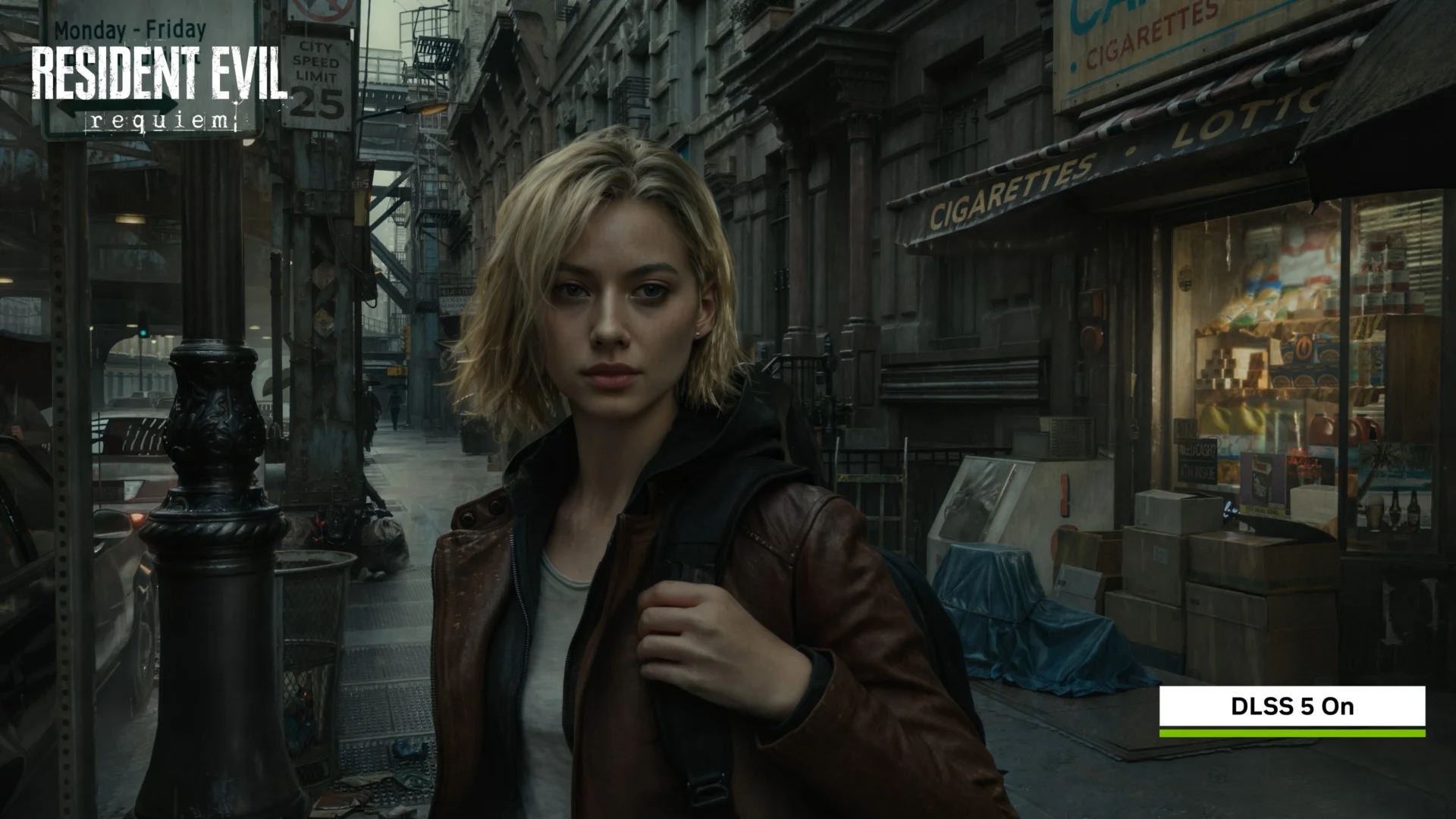 Resident Evil Requiem in esecuzione con DLSS 5 (a sinistra) e senza DLSS 5 (a destra). ©Nvidia