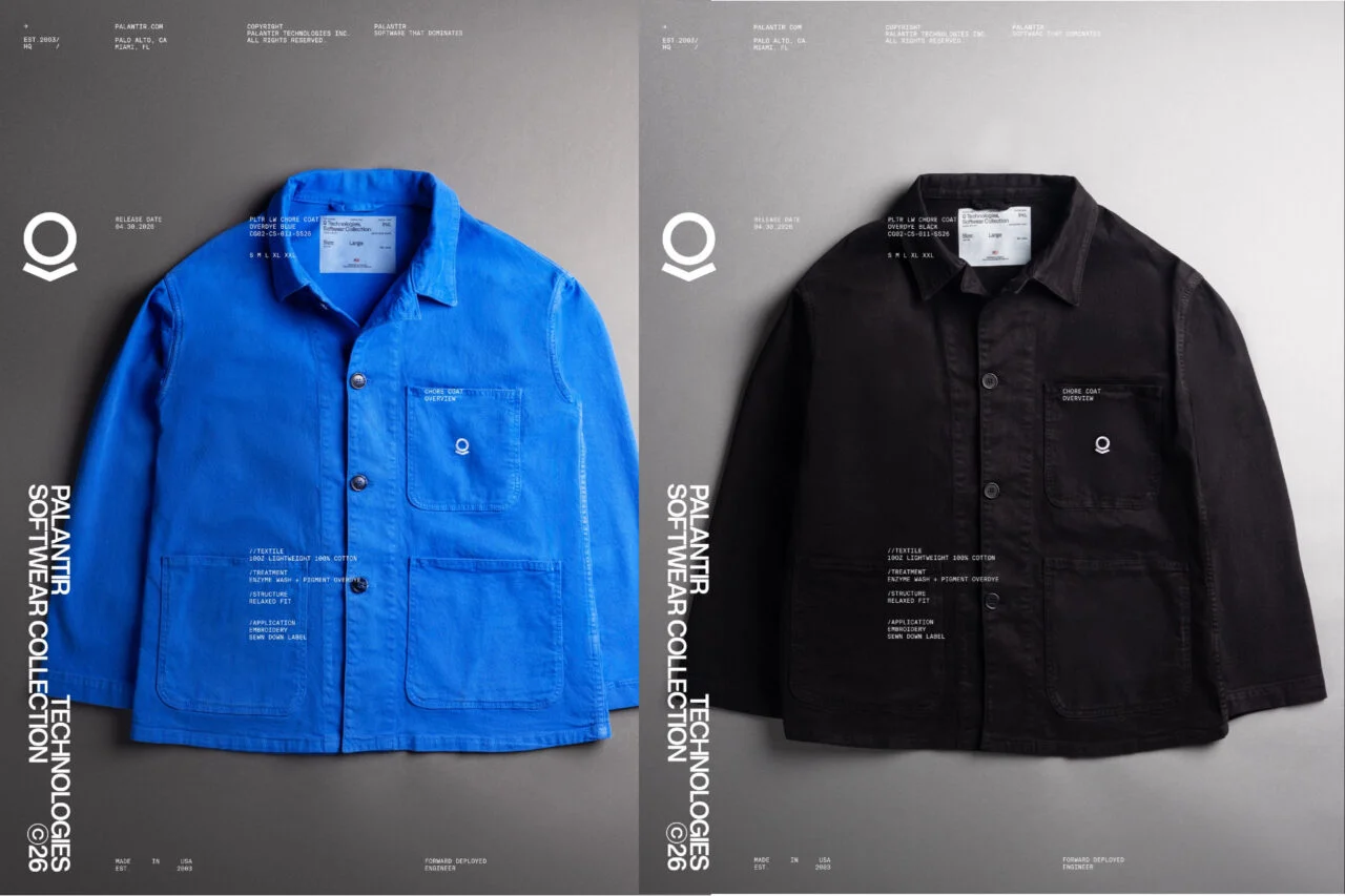 Non è solo il cappotto da lavoro. L’azienda vende anche felpe, magliette e cappelli, tra gli altri articoli. Una maglietta Palantir venduta nel 2025 conteneva un’immagine di Karp insieme alla parola “Dominare.” Quell’articolo non è più disponibile per l’acquisto.