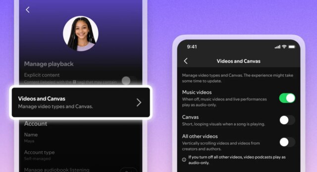 Il secondo sarà un nuovissimo interruttore che disattiva specificamente l’accesso ai video musicali. Il terzo, anch’esso nuovo, disabiliterà tutti gli altri contenuti video sulla piattaforma, inclusi video podcast e video verticali. Insieme, questi tre controlli ti offriranno opzioni granulari per scegliere esattamente la quantità di video che desideri nella tua esperienza Spotify.