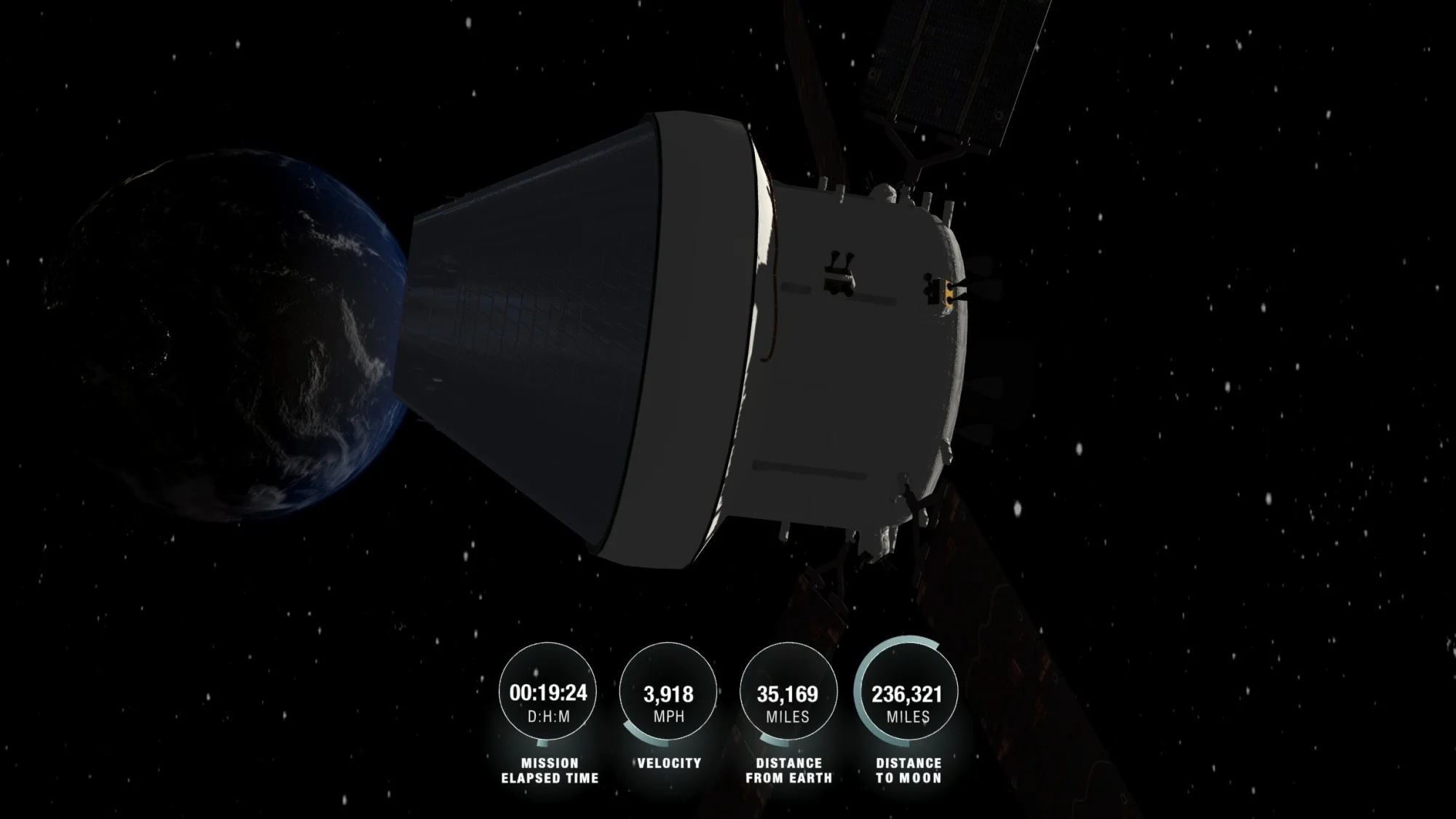 Dal momento del lancio, l’equipaggio si è trovato in un’orbita terrestre alta, concedendo loro il tempo di controllare i sistemi a bordo della navicella prima di spingersi in una traiettoria diretta alla Luna.