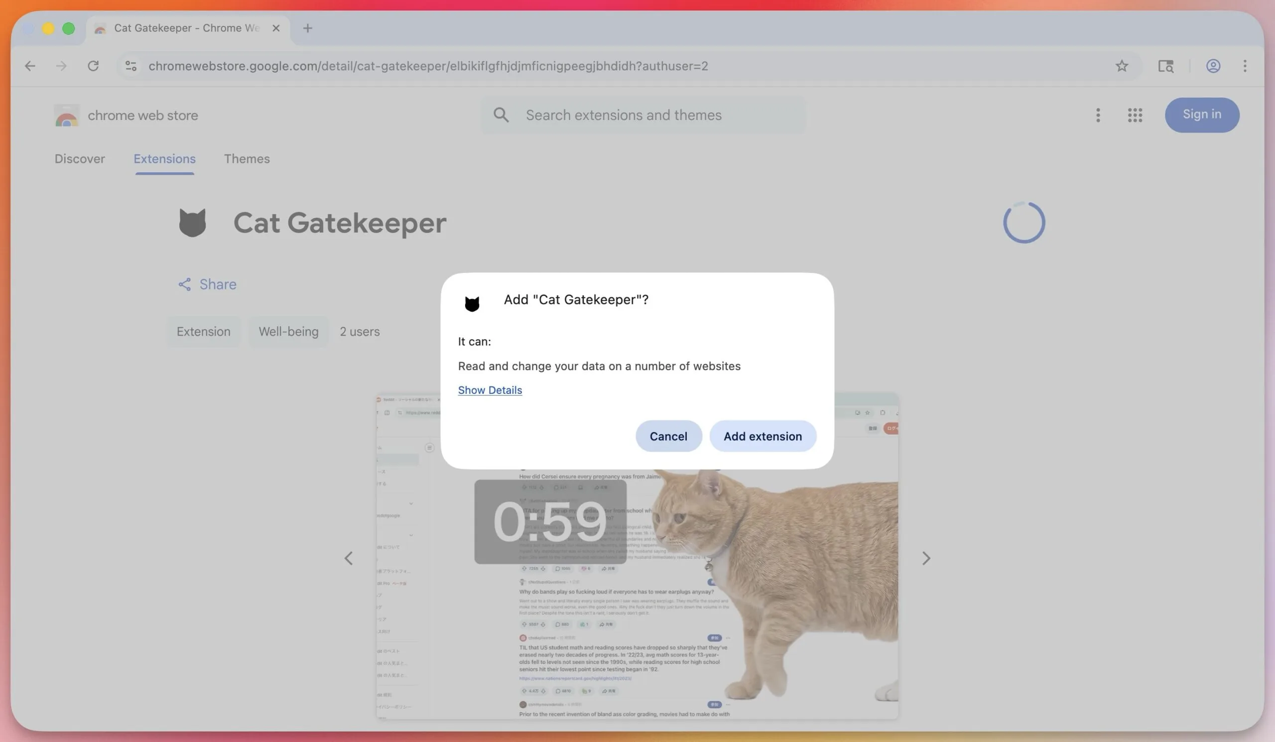 È gratuito, non contiene pubblicità e, secondo lo sviluppatore, l’estensione non raccoglie alcun dato. Puoi installare Cat Gatekeeper dal Chrome Internet Retailer. Fai una prova e fammi sapere se il gatto ti ha davvero fatto fare una pausa.