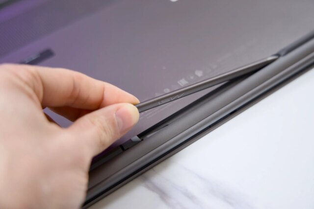 Sotto c’è dove troverai lo slot per la Nano Pen. Lo stilo non è necessariamente pensato per gli artisti che cercano una combinazione PC e pill. È lì per abilitare be aware rapide sui documenti e l’opportunità di evidenziare il testo quando si prepara un esame. I problemi diventano evidenti non appena si tenta di accoppiare la Nano Pen con il laptop computer. I magneti integrati nel laptop computer e nello stilo trascinano immediatamente lo stilo sul lato dello chassis del laptop computer. Quando si tenta di far corrispondere i punti di ricarica della Nano Pen con il suo involucro, lo stilo gira per essere rivolto nella direzione sbagliata. L’unico modo per assicurarsi che la Nano Pen si inserisca bene e saldamente è manovrarla nel modo corretto e bloccarla con entrambe le mani in modo che si blocchi in posizione.