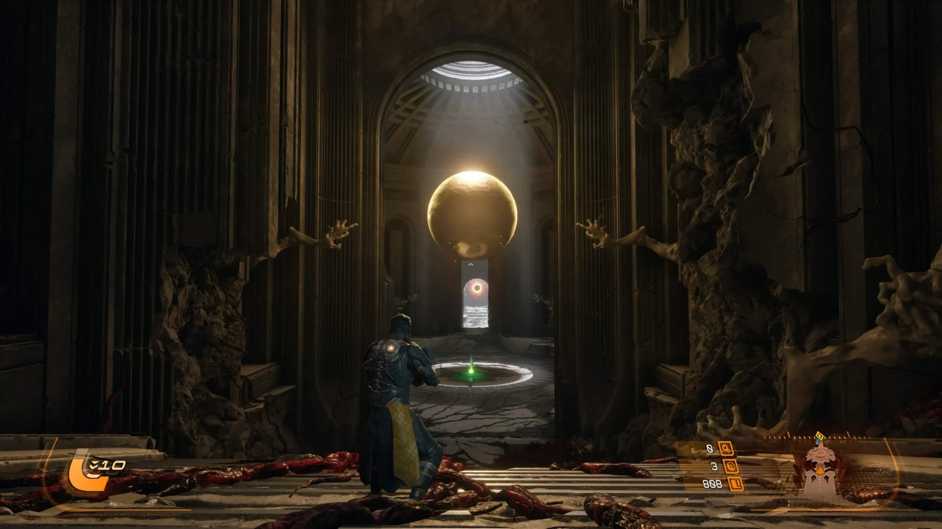Se hai giocato Ritorno prima, conoscerai molti dei trucchi Saros ha un asso nella manica. I nemici sparano ancora una volta proiettili codificati a colori che possono essere lanciati o evitati in tutta sicurezza, alcuni nemici sono dotati di scudi e c’è l’incontro occasionale in cui un muro invisibile ti blocca nel campo di battaglia con più ondate di nemici da distruggere. Oltre allo scatto, la mobilità si espande con un rampino e zone opzionali che offrono la possibilità di ottenere un bottino migliore, rappresentato da pistole, oggetti sanitari o artefatti con benefici ed effetti collaterali negativi per rendere le corse più facili o più difficili.