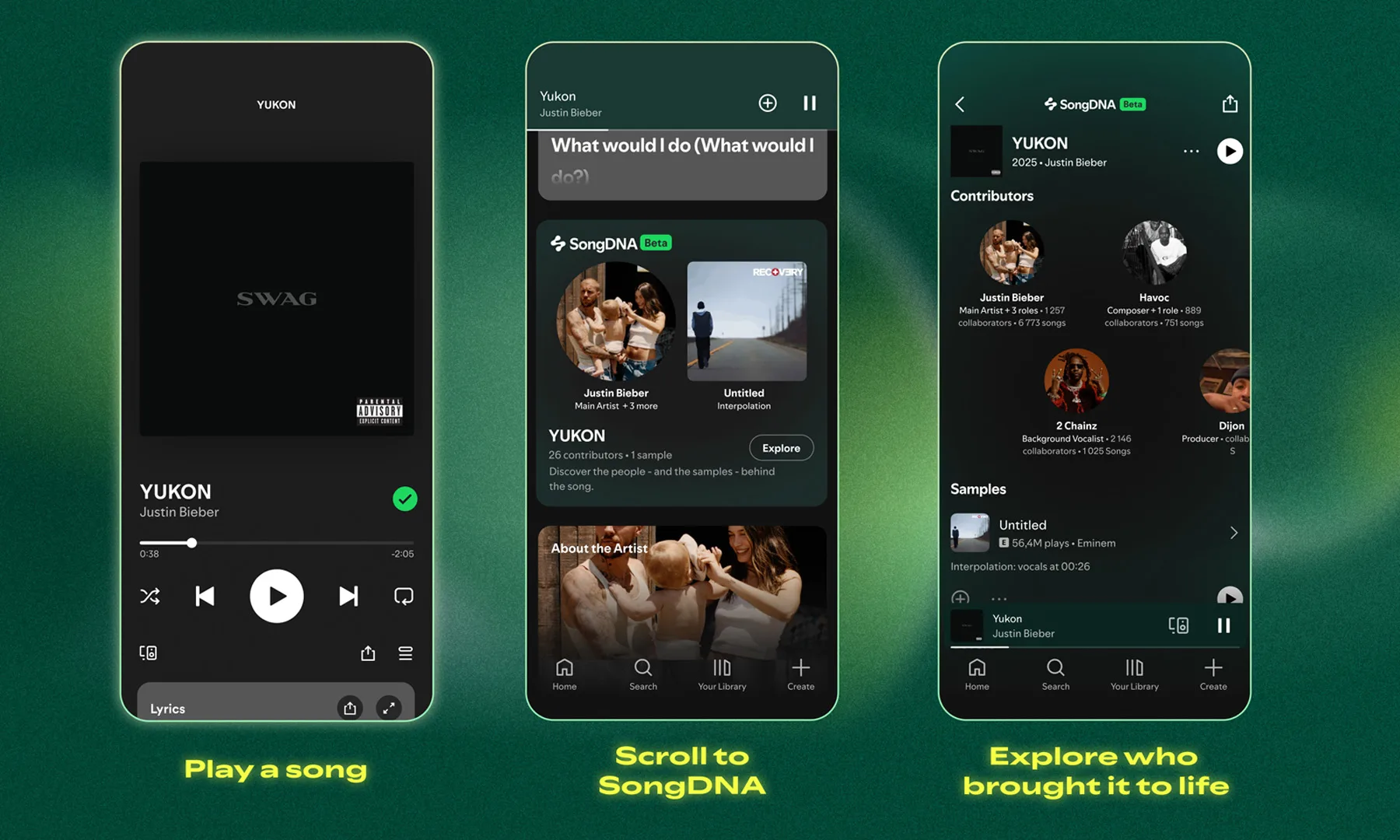 La funzionalità è attualmente in versione beta e verrà implementata gradualmente, con accesso anticipato disponibile tramite i programmi di anteprima di Spotify. Fondamentalmente, SongDNA è progettato per rispondere a una semplice domanda: come è collegata questa canzone a tutto ciò che ascolti?
