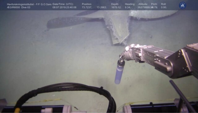 La Norvegia ha assunto compiti di monitoraggio su Komsomolets mausoleo nucleare sommerso negli ultimi decenni. La nuova analisi di Gwynn e dei suoi colleghi si è concentrata sui dati raccolti nel 2019 tramite sommergibili gestiti a distanza inviati per ispezionare il relitto, armati (tra gli altri strumenti) di sonar, video e grandi contenitori per il campionamento dell’acqua da 11 galloni (40 litri) utilizzati per testare gli isotopi radioattivi. La scoperta più preoccupante fu una perdita attiva di materiale radioattivo da un tubo di ventilazione e da una vicina griglia metallica, una perdita occasionalmente abbastanza potente da essere visibile in video.