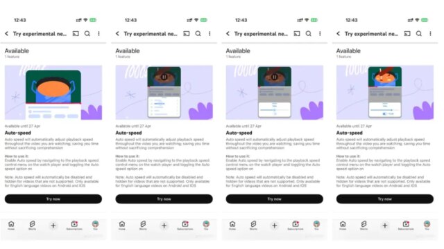 Secondo a rapporto da Android Authority, la funzione Auto Velocity può regolare automaticamente la velocità di riproduzione durante la riproduzione di un video. È progettato per risparmiare tempo senza rendere il contenuto più difficile da comprendere. L’opzione viene visualizzata nella sezione delle funzionalità sperimentali all’interno dell’app. Rimane nascosto o viene disabilitato sui video non supportati e, anche sui dispositivi e sulle regioni supportati, non viene ancora visualizzato su tutti i video.